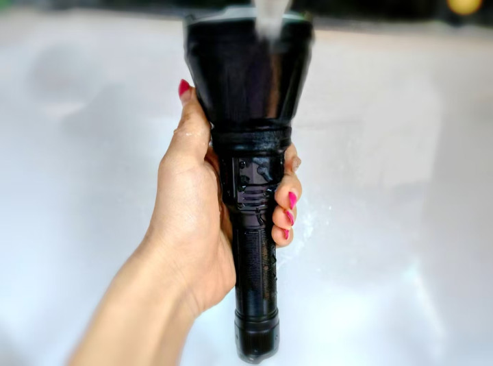 Fenix HT18R V2.0还具备IP68级防水性能与1.5米抗跌落能力。我们将其完全浸泡在1.5米深的水中30分钟,取出后功能正常;从1.5米高度自由跌落至水泥地面,机身无明显损伤,照明效果不受影响,完全能应对户外复杂的恶劣环境。