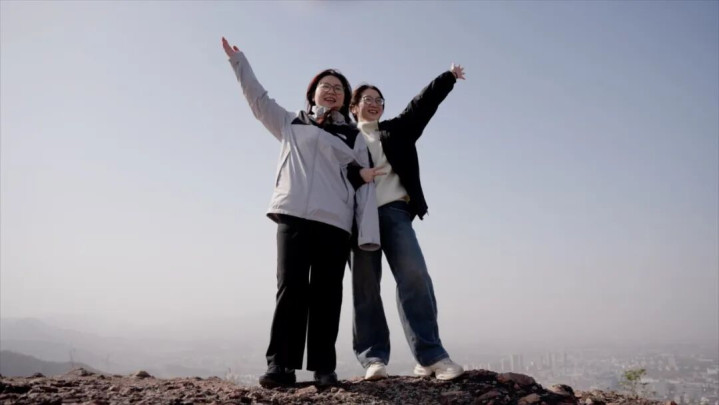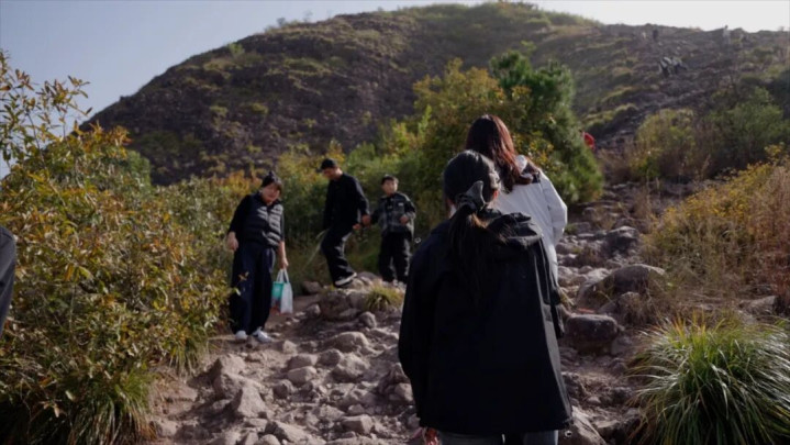 官岩山的上山路十分原始,目之所及不是石块就是黄土。想要成功登顶,还得穿过满是乱石的山坡。起初大家还很兴奋,开玩笑说自己是“进山当岩羊”,但随着山坡愈发陡峭,最初的兴致渐渐消退,只剩下望不到山顶的疲惫。我们在铺满乱石的山坡上小心攀爬,每抬一步,都得确认脚下石块是否稳固、有没有滑脚的沙石,才敢稳稳落脚。