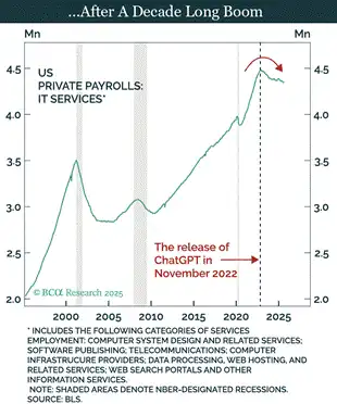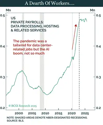 无论是否有泡沫,为了‘赢得’AI 而增加支出正在驱动美国经济。特朗普承诺让经济运行得火热,他不能仅仅因为几年后这些支出的回报率可能低于资本成本就停下来。