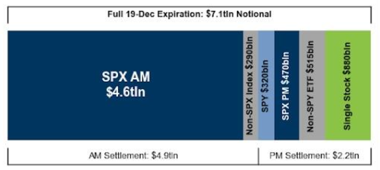 此次期权到期之所以备受关注,核心在于其前所未有的规模。根据高盛分析师John Marshall的估算,超过7.1万亿美元的名义风险敞口将在今天集中到期。