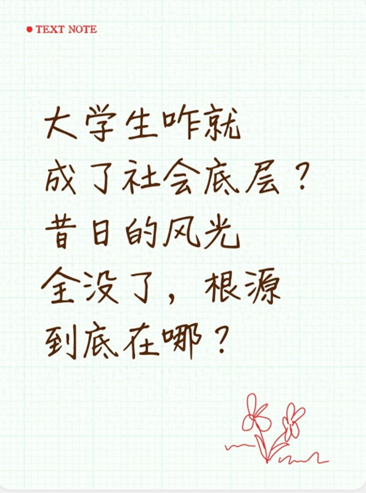 最近,网上有个话题挺火:"大学生是不是成了社会底层?"这话听着有点扎心,但确实反映了不少人的困惑。二十年前,大学生是"天之骄子",毕业包分配、进国企;现在,大学生遍地都是,找工作难、工资低,甚至有人说"月薪三千不如送外卖"。今天咱们就来聊聊,这背后的根源到底是什么,大学生真的"沦落"了吗?